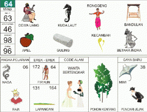 - Angka Pelarian (AP) 06 adalah 64 artinya Naga dan Raja