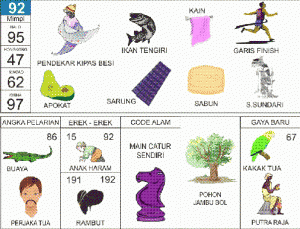 - Angka Pelarian (AP) 92 adalah 86 artinya Buaya dan Perjaka Tua
